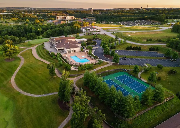 Die einladende Villa At The Hills - A Grand Branson Vacation 4 Bdr Golf Resort liegt 650 Meter vom Branson RecPlex entfernt und verfügt über eine Terrasse mit Blick auf die Stadt. Die Villa ist in circa 6 km Entfernung von der Branson Sawmill und bietet Parkplätze vor Ort.
